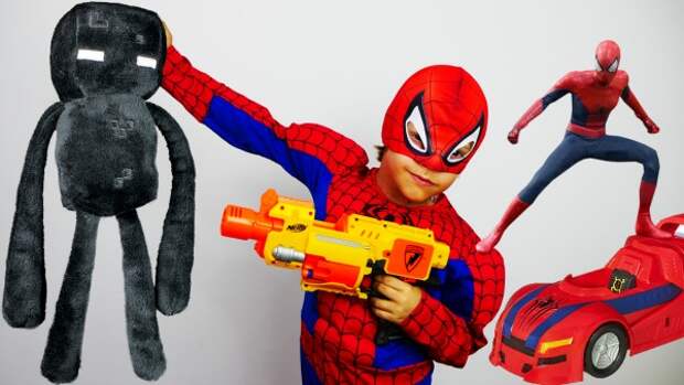 Ребята, а вы смотрите мультик Спайдермен? Это самый любимый мультик мальчишек. Знаете ли вы про игрушки Майнкрафт? Так вот это видео о том как большой Спайдермен с помощью игрешек Майнкрафт спасает маленького. Давайте посмотрим игру онлайн!